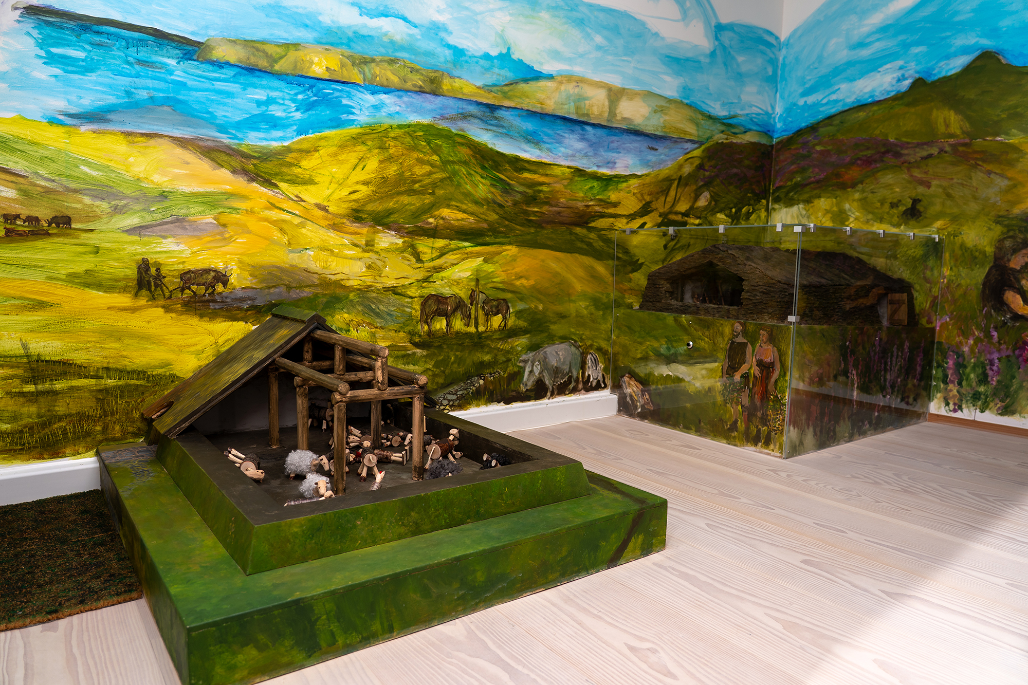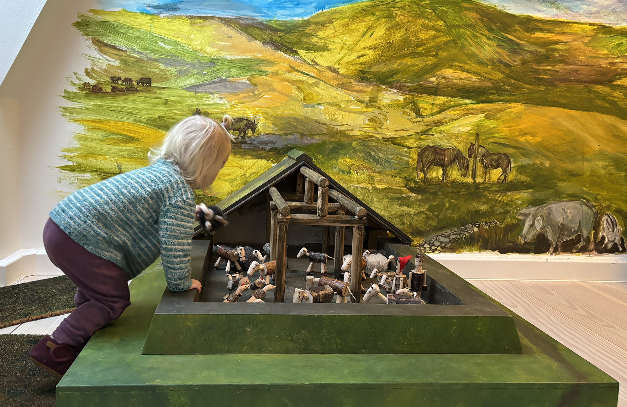 Du kan lege med jernaldergårdens dyr. Skal køer og får på græs eller skal de ind i stalden?
